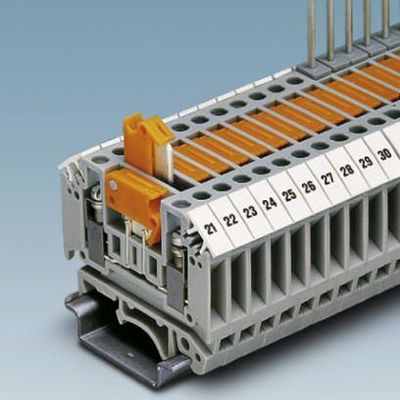 Клемма с ножевым размыкателем, с винтами для крепления контрольного штекера, подключение с помощью винтовых зажимов, номинальное сечение подключаемых проводников - 0,2 мм² - 4 мм², AWG: 24 - 12, номинальный ток - 16 А, номинальное напряжение - 400 В, длина - 46 мм, ширина - 5,2 мм. Цвет: синий. Монтаж на DIN-рейку NS 35/7,5, NS 35/15, NS 32