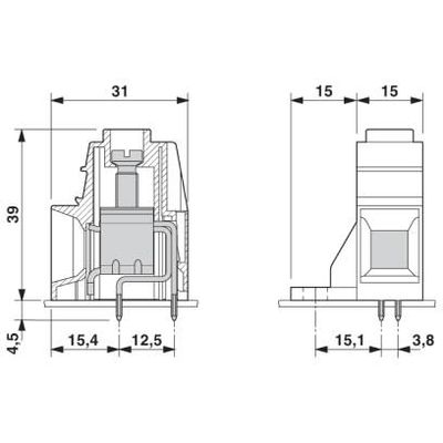 Клеммы для печатной платы, номинальный ток: 125 A, номинальное напряжение: 1000 В, размер шага: 15 мм, полюсов: 1, тип подключения: Винтовой зажим с натяжной гильзой, монтаж: Пайка волной припоя, направление подключения, проводник/печатная плата: 0 °, цвет: зеленый. Необходимо избегать длительных механических нагрузок на клеммы