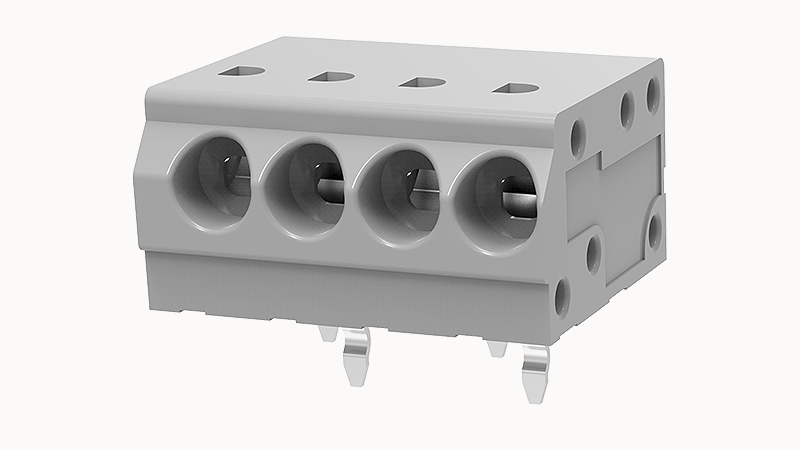 Клемма для печатной платы c шагом 3,5 мм, 4 полюса, цвет - серый, номинальное напряжение - 250 B, номинальный ток - 3 А, тип подключения - зажим Push-in, монтаж - пайка волной припоя, угол между проводником и печатной платой - 0°, сечение проводника от 0,2 до 0,75 мм², длина зачистки изоляции - 8 мм, материал контакта - медный сплав, покрытие контакта - луженый, материал корпуса - полиамид 6.6, класс воспламеняемости - V0, температура окружающей среды при эксплуатации от -40°C до +105°C