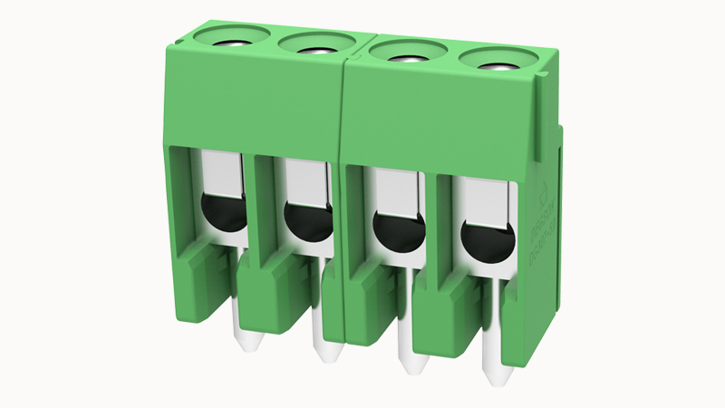 Клемма для печатной платы c шагом 5 мм, 4 полюса, цвет - зелёный, номинальное напряжение - 250 B, номинальный ток - 18 А, тип подключения - винтовой зажим с защитой провода, монтаж - пайка волной припоя, угол между проводником и печатной платой - 0°, сечение проводника от 0,2 до 2,5 мм², длина зачистки изоляции - 6 мм, материал контакта - медный сплав, покрытие контакта - луженый, материал корпуса - полиамид 6.6, класс воспламеняемости - V0, температура окружающей среды при эксплуатации от -40°C до +105°C