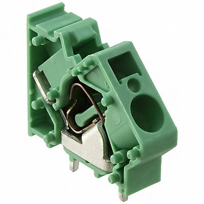 Клемма для печатной платы с шагом 7,5 мм, 1 полюс, зелёная, 630 В, 32 А, пайка волной припоя, 45° между проводником и печатной платой, пружинный зажим