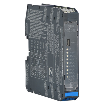 Повторитель сигнала переключателя/датчика приближения D5231E представляет собой модуль, подходящий для применений, требующих уровня SIL 2 в системах безопасности для отраслей с высоким уровнем риска. Устройство может быть настроено для работы с переключателями или датчиками приближения, расположенными во взрывоопасной зоне, и повторяет состояние входа на контакт твердотельного реле в безопасной зоне. Доступна настраиваемая схема обнаружения неисправностей для датчиков приближения или переключателей, оснащенных концевыми резисторами. Модуль полностью настраиваемый, что позволяет выполнять мультиплексирование входов/выходов, дублирование, инверсию и логическую обработку входных сигналов (И, ИЛИ). Каждый выход также может быть настроен для сообщения о совокупной неисправности любого подмножества входов. Параметры конфигурации и диагностики программируются и могут контролироваться/настраиваться через Modbus.